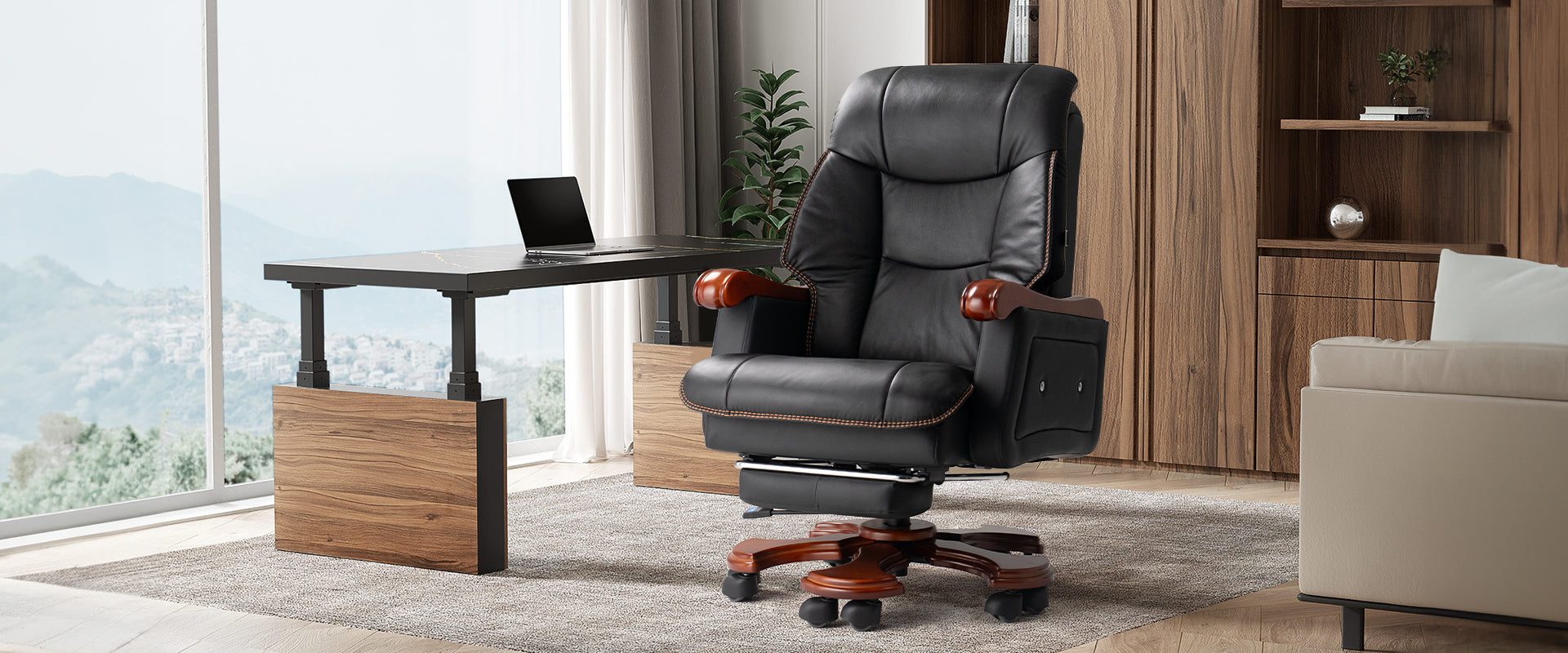 Im Vergleich zu den Kunststoff Armlehnen aller en Chef Bürostühle sind unsere stilvollen Armlehnen aus Massivholz langlebiger und stellen keine Sicherheits- oder Geräuschbedenken dar.